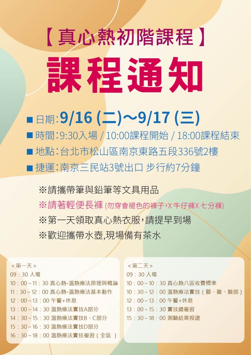 2025.09.16~17 真心熱初階課程・第31屆即將開課